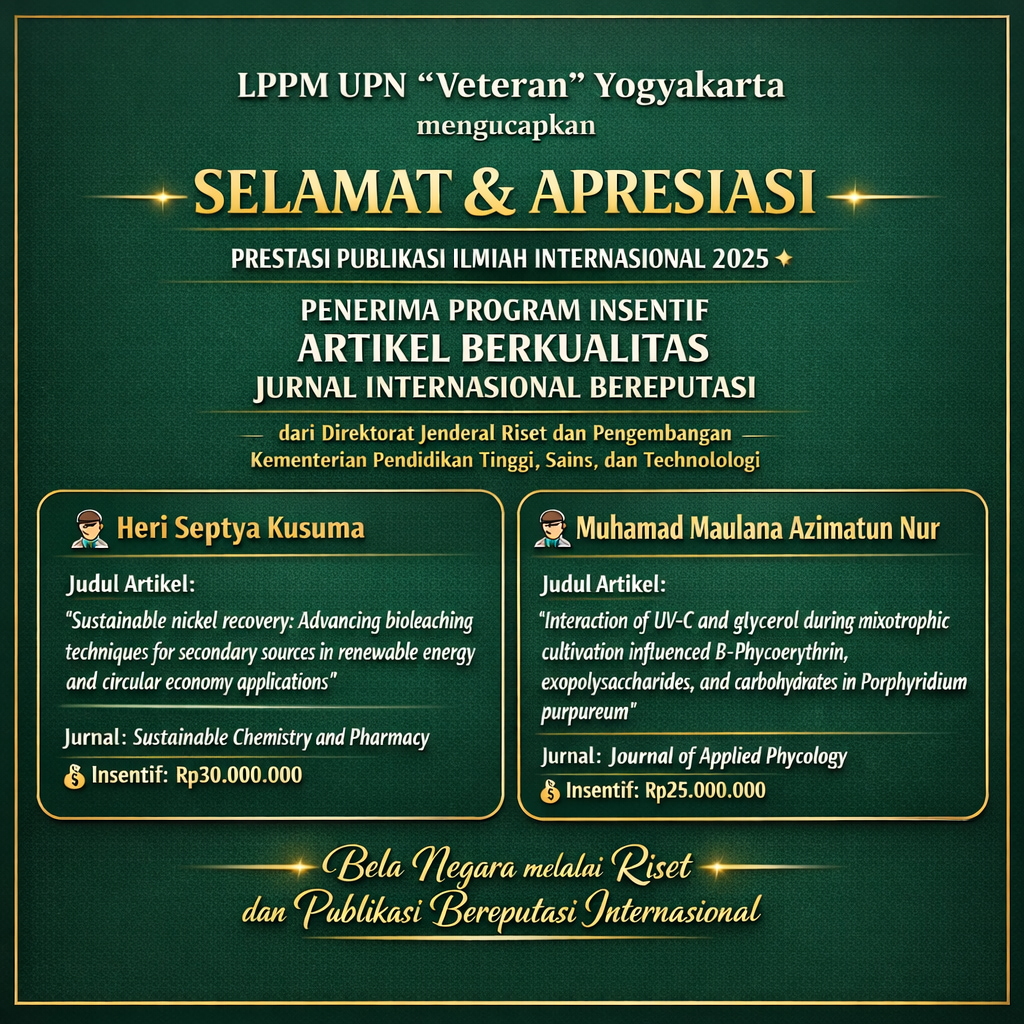 Selamat kepada Para Penerima Insentif Artikel Berkualitas Pada Jurnal International Bereputasi 2025 dari kemdiktisaintek